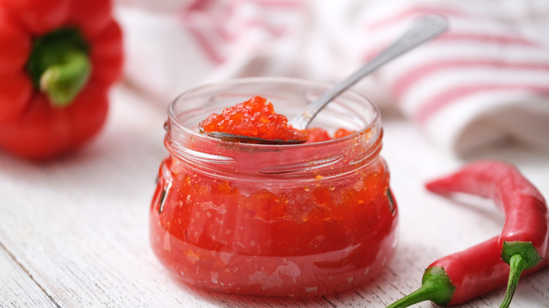 Once you've tried the hot pepper jelly on corn, you may just want to spread the spicy-sweet condiment on everything. But what are some of its best uses? Well, for one, you can turn it into a vinaigrette — there are plenty of recipes out there to guide you — and add it to your next salad. You can pair this vinaigrette with a classic Italian salad or use it to switch up a Caesar salad.