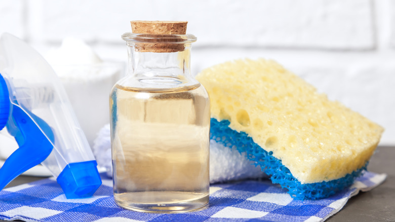 While all you need to deep-clean your kitchen sponges is a dishwasher, vinegar can be an alternative. White distilled vinegar is the vinegar of choice due to its antibacterial properties and color since darker varieties may stain your sponge. The acetic acid in vinegar is what allows it to remove dirt, debris, and some germs so effectively, but it does not pose a health risk to users because of its low concentration.