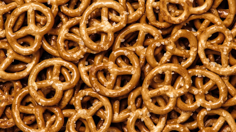 While low-fat pretzels may feel like a healthy alternative to chips, they're anything but. Sure, pretzels are generally pretty low in fat, but that salty flavor? It comes from salt, folks — a lot of it. One 28-gram serving of this snack, which comes to about 18 individual pretzels, will provide you with 450 milligrams of sodium. That's 20% of your daily value, the same amount as a full microwave meal from some more health-conscious food producers.