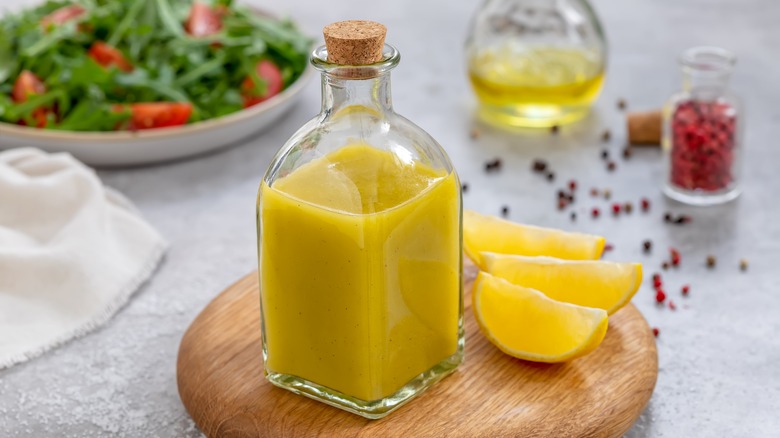 If these salad dressings aren't crammed with sugar, then they often achieve their flavor through high levels of salt. Walmart's Great Value Fat Free House Italian Salad Dressing & Marinade, for example, had 340 milligrams of sodium per serving, approximately 15% of your daily value. Be wary of fat-free and low-fat salad dressings that are marketed as "sugar-free," too. As well as generally having high sodium contents, they may also achieve their sweetness through sweeteners like sorbitol, which can have their own impact on our health. Sorbitol, for instance, can have a laxative effect when it's eaten in higher quantities.