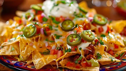 Laying the chips out in layers and keeping the bean layer thin gives you easy access to every chip, ensuring each one gets just enough beans for its size and that every chip has something on it. As a bonus, it makes it easier to distribute the rest of your toppings, such as jalapeños and cheese. Speaking of cheese, making that the last topping on each layer can help protect your carefully beaned nachos from the excess moisture that leads to sogginess, which is important if you go to all this trouble. And when it all comes out of the oven, every chip is lightly toasted on the edges. You can put condiments and additional toppings on when they come out of the oven if you'd like to make it look more appetizing. Whatever you do, the only way to ruin them now is by forgetting your favorite topper.