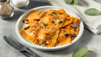 Since the 14th century, ravioli has been an Italian staple enjoyed by all, particularly in the Northern regions of the country. This pasta is made by rolling out a very thin piece of dough and cutting it into pieces, which can vary in shape. A piece of dough is topped with the filling, covered with another piece of pasta, and then crimped around the edges to form a sealed pillow.