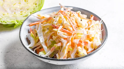 Instant ramen noodles — made from flour, salt, water, and an alkaline water known as kansui – are steamed, air-dried, and fried before they are packaged. They are tasty and can be made in just a few minutes when you want something fast to make and satisfying to eat. But all of these qualities also make their uncooked version a perfect salad topping that adds texture and a salty flavor to coleslaw. Once you add them to this dish, you will discover they have a place in your salad topping repertoire right beside those nuts, croutons, and fried onions.