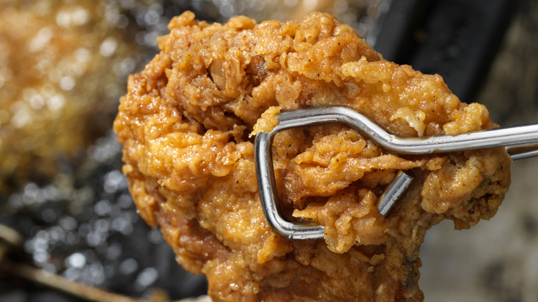Per the Milk Street Facebook page, López-Alt says you should heat up your frying oil of choice — he uses peanut — to a balmy 350 degrees Fahrenheit. Let the chicken fry for 2 to 2½ minutes, making sure you turn the chicken a couple of times as it heats through. Then, remove it from the fryer and allow the excess oil to drain and be absorbed on a paper towel. López-Alt says it will taste better refried than the first time you ate it.