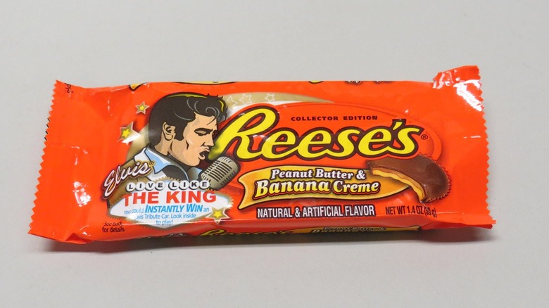 So, when Reese's — already known for their peanut butter cups – set out to create a tribute to Elvis, they had an easy place to start. Thankfully, they chose to forgo the bacon and instead created the Reese's Peanut Butter Banana Creme cup. However, the limited-edition Reese's release was short-lived. First launched in 2007, it was discontinued the same year, and now you'll be looking to pay inflated prices on eBay to buy a 15-year-old candy bar. There's still an appetite for them, though, as the limited-run Reese's offering gained a following of people who would like to see the cups return, spawning a petition to bring it back.