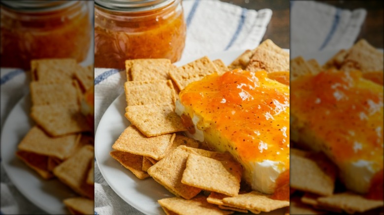 If you hail from the American South, you've likely heard of jezebel sauce, also known as Dixie relish. Sweet and spicy by turns, this condiment tastes heavenly slathered on a burger under a mess of caramelized onions, or served over a block of cream cheese with crackers on the side at your next get-together. It's a simple mixture of prepared horseradish (which is not to be confused with either fresh or dried horseradish), dry mustard, crushed red pepper, black pepper, and fruit marmalade or jam — and yes, there is a difference. The result is subtly fruity with a kick of powerful heat.