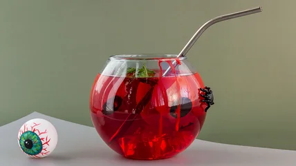 But a plain frozen hand isn't very exciting, so you'll want to spice things up. Take green lagoon punch, for instance. It uses green neon food coloring for the punch and purple neon food coloring for the hand, so the two colors can mysteriously swirl together as the ice hand melts. You can also freeze some spooky decorations inside it, including plastic eyeballs, homemade gummy worms, and glow-in-the-dark creepy crawlies.