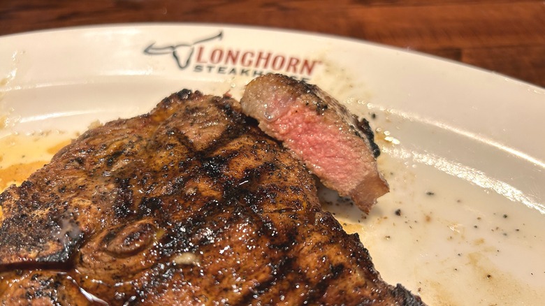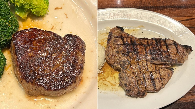 What's the real difference between the most expensive and cheapest steak at LongHorn Steakhouse? Well, I needed to find out. There is quite a price difference (more than double!) between these two fresh, never frozen options, so it really made me wonder what sets the two cuts apart. Going into this experiment, I thought it might just be a sizing thing, as paying for a humble 6-ounce steak is obviously going to be a lot different than one that is a massive 22 ounces. However, after tasting both, I can definitely say that the price difference and size of these two steaks aren't the only things that set them apart.