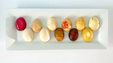 As a professional chef, one of my primary jobs is to come up with ways to infuse every ingredient with flavor. Some ingredients are more receptive to this than others. One that poses a unique challenge are hard-boiled eggs. The process of perfectly hard-boiling eggs involves heating them in a liquid, usually water or broth, to denature the proteins within their yolks and whites, causing them to firm up, thereby cooking them. Though some flavor can be absorbed from the liquid by the eggs, their shells act as a kind of barrier, preventing them from taking on substantial seasonings in the limited time they spend submerged there. A better alternative to imparting hard-boiled eggs with flavor is to marinate them.