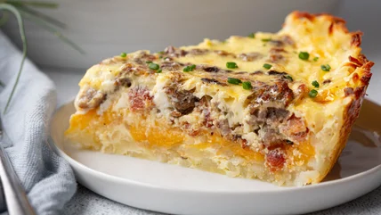 Whether its for breakfast, brunch, lunch, or dinner, quiche is one dish that knows no time of day. While Americans are more likely to eat quiche in the morning hours, the eggy dish is suitable for lunch or dinner (classic quiche lorraine, anyone?), making it a perfectly versatile dish. This recipe for ultimate breakfast quiche with a hashbrown crust takes the dish into morning territory, with the inclusion of bacon and sausage. The tender custard-like interior, crispy bacon, gooey cheese, and crispy hash brown crust make it texture lover's dream quiche.