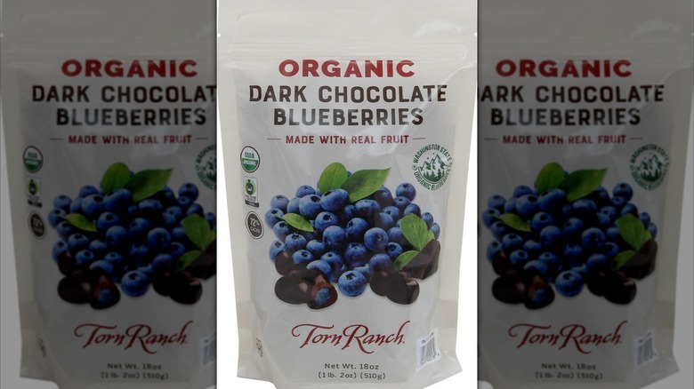 We all love dark chocolate-covered blueberries, but if you were buying them from Costco back in 2021 then we'd imagine you might love them a little bit less — especially if you had a tree nut allergy. Costco had to put out a recall for Torn Ranch Organic Dark Chocolate Blueberries sold in its stores due to the potential for tree nuts, and specifically almonds, to be in the product. This allergen wasn't declared on any packaging, leading Costco to fear that people with allergies could eat them and experience a serious reaction.