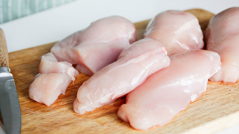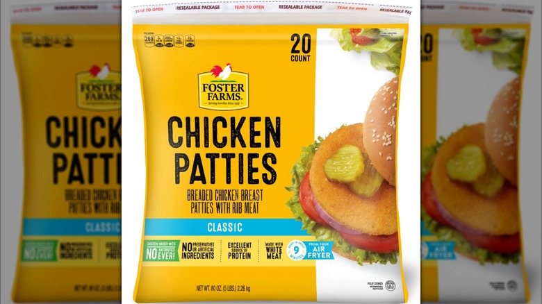 Cooked, frozen, and breaded chicken patties are some of the most reliable ingredients around: You know what they taste like, you know how to cook them, and you know what they'll feel like when you bite into them. What you probably don't expect when you eat a chicken patty, though, is a mouthful of plastic. Unfortunately, that became a reality in 2022, when Costco received complaints from customers that their Foster Farms chicken patties, which were sold at the store, had pieces of hard, clear plastic in them.