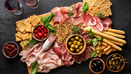Familiar cheeses like manchego, parmesan, and sharp cheddars are a great snack to pair with more adventurous smoked and cured meats you may not have tried before. You're probably familiar with some nice prosciutto and smoky Italian beef sausage, but what about speck or bresaola? You can also enjoy this category as a pescatarian with smoked salmon or lox.