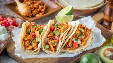 Already seasoned and roasted to perfection, the rotisserie chicken offers its signature briny, savory taste that never fails to delight. Even as leftovers, you can still taste the slow-roasted, comforting flavors of the chicken. Shredded rotisserie chicken is a great taco filling on it's own, or you can use additional seasonings or sauces. You can just go with a taco seasoning mix, or you can get creative.