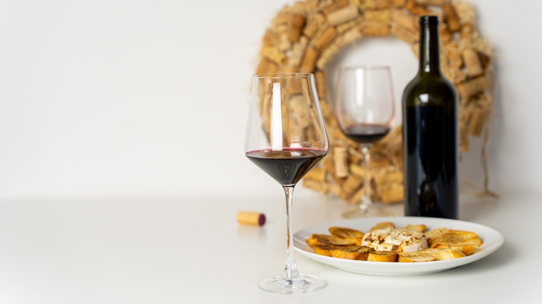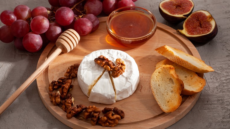There's a good reason why fruits and nuts are some of the best accompaniments for brie – they really work. Acidic fruits like berries, apples, and grapes offset the rich flavor of the cheese with bright, tart notes, and help to bolster its inherent funkiness. Meanwhile, nuts give you a fatty crunch that gives your teeth something to wrap around, with their crispness smoothed by the creamy cheese. You should also think about your wine pairings, too. A crisp white like pinot grigio provides a gentle acidity that livens up the cheese, while Merlot's deep flavors contrast its fattiness enormously well.
