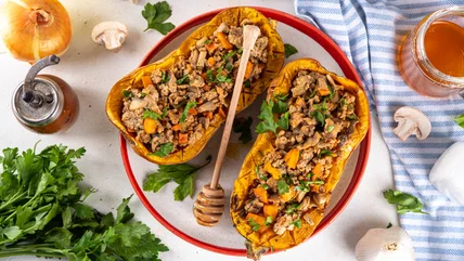 Are you making a veggie-based stuffing? Try mashing up garbanzo beans and beating an egg to create a pasty adhesive for your root veggies — think carrots and sweet potatoes — along with chopped onions, celery, garlic, and bake. Just remember to pre-cook your crunchier vegetables to avoid one of the 15 biggest mistakes everyone makes with stuffing. If you don't, they might not reach the consistency you like. If you are looking for a fun and festive way to present this side dish, try transforming your veggie-based stuffing into individual portions by making individual stuffing cups that your guests will love.