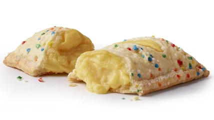 For those not familiar with McDonald's holiday pie: This seasonal flavor consists of a flaky pastry crust that's filled with creamy custard. The holiday pie is finished off with rainbow sprinkles and a sugar glaze for an extra punch of sweetness.