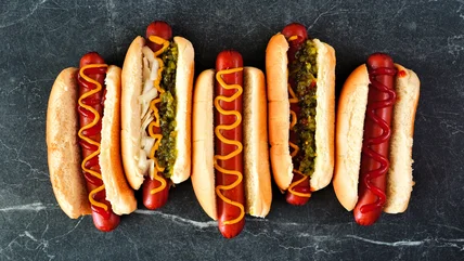 If you're going to serve hot dogs at a party, then you need to have a hot dog topping bar as well so that your guests can customize their hot dogs exactly to their liking. First up: Condiments. Mustard and ketchup are both a given, of course, but it's also a good idea to have condiments like classic ranch, honey mustard, and even garlic aioli — all of which you can make from scratch if you're feeling ambitious.