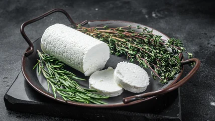 If you don't have a cheese lyre, guess what, unflavored dental floss is a great tool to cut soft cheeses in a pinch. However, since we eat with our eyes first, if you're using dental floss you may want to precut the log of chevre before serving it to your guests.