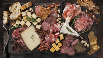 So, how do you create a beautifully abundant edible-foods-only charcuterie board that doesn't look like your five-year-old assembled it? For a well-designed charcuterie board, organize your ingredients first. This will help you with both the placement of your finger foods as well as crafting your meat and cheese vision. Additionally, the charcuterie expert says if you are worried that your board looks sparse, you can add fruit such as fresh grapes or even dried fruit.
