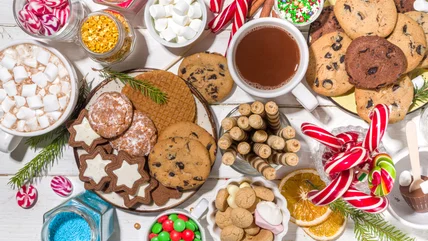 Plus, you can't forget about some sweet sauces—chocolate sauce and caramel sauce are both perfect additions to the board. You can also include various things to stir the hot chocolate with—full-sized candy canes, cinnamon sticks, and cylinder-shaped Pirouette cookies. You can also include small treats for your guests to enjoy with their mugs of hot cocoa—chocolate truffles, cookies, or brownies are all great, tasty options.
