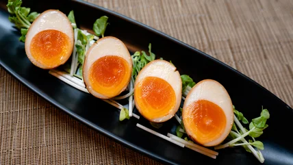To marinate boiled eggs in miso, skip the frying step, and place peeled eggs in a sealed bag along with the marinade. The process is quite similar to making soy-marinated eggs, and you can use the same mix of ingredients used to make the braising liquid to marinate hard-boiled eggs. Alternatively, you can cover peeled boiled eggs in miso paste, wrap them, and refrigerate them for 4 to 5 hours. The eggs will have a light brown exterior infused with miso flavor, and you can eat them as is, or even use them to make easy deviled eggs that pack lots of flavor with way less hassle.