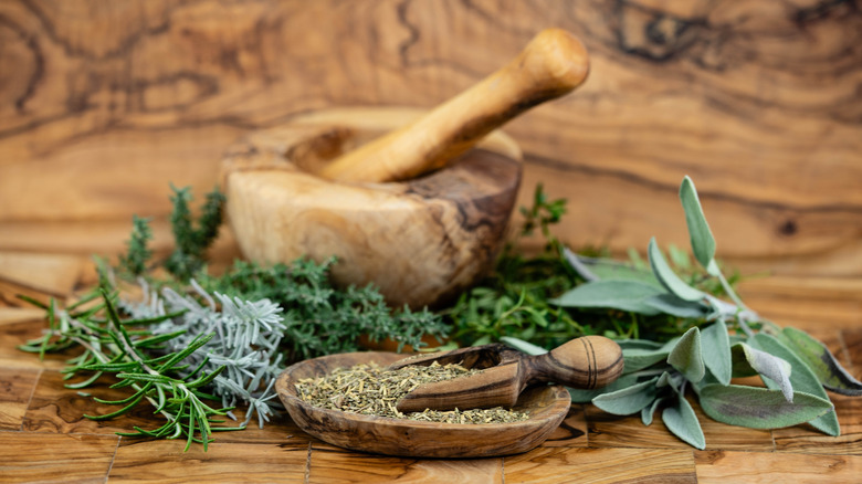 Herbs de Provence is one of those underrated types of herbs you should be cooking with more often, and it has certainly been around long enough to get a firm footing in the American market. After all, the French blend started popping up Stateside in the 1970s, thanks to Julia Child. Still, it's important to note that unless you purchased this mix while vacationing in the South of France or bought a bottle of herbs de Provence that was imported, what you're using in your dishes is probably not from Provence. Instead, American-based companies will make their own commercial version of the blend, often including lavender (which is a less popular addition in a true French mix). This distinction means that herbs de Provence can taste very different across brands. Either way, they should each bring a bright herbaceous note to whatever you're cooking.
