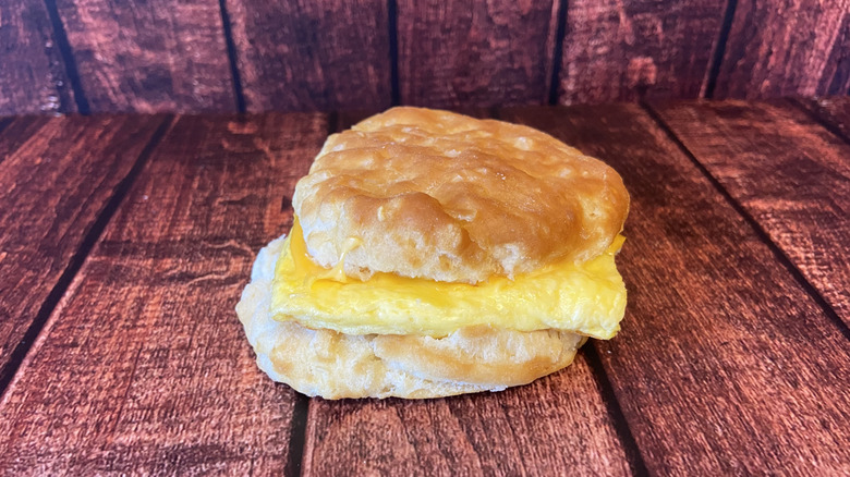 You'd be hard-pressed to find a fast food breakfast sandwich more plain than Burger King's egg and cheese biscuit. Everything in this sandwich was executed just fine — the problem here is that I make a simple egg and cheese sandwich like this for breakfast all the time, so it's hard to get excited about a sandwich like this. That said, I can appreciate the utility of a meatless option like this — and it's a solid one at that. And to Burger King's credit, all of the eggs in my order were consistently and surprisingly fluffy, unlike some of its main competitors that I've recently ranked (looking in your direction, McDonald's).