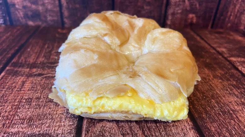 The biggest takeaway here is that Burger King's croissant sandwiches are much better than their biscuit sandwiches. But hands down, Burger King's sausage, egg, and cheese croissant sandwich was my favorite breakfast menu item. The sausage patty is the perfect size, nestled up along the edges of the croissant, ensuring that each and every bite gets a taste. The flavor of the sausage is great, too — savory without being overly salty.