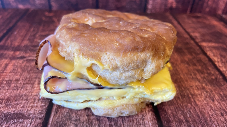 14. Ham, egg, and cheese biscuit breakfast sandwich