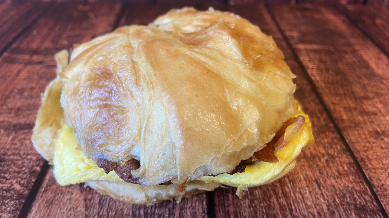 1. Sausage, egg, and cheese croissant breakfast sandwich
