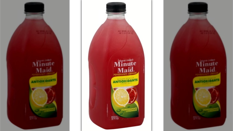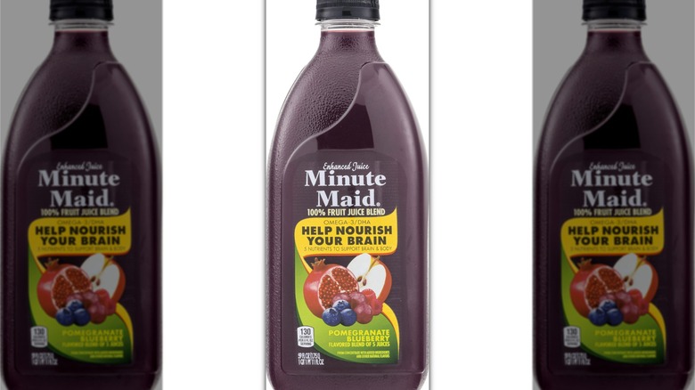 Who likes their juice with a side of legal drama? If so, you're gonna love Minute Maid's Pomegranate Blueberry Flavored Blend of 5 Juices (not the snappiest name, we've gotta say). This juice was first released in the late 2000s, and with pomegranate listed first in its name, you'd be forgiven for assuming that it had a pretty pomegranate-heavy flavor. The thing is that it kinda didn't: In fact, the drink contained just 0.3% pomegranate juice, which felt like false advertising to the company POM Wonderful, which had (and still has) its own line of pomegranate juices.