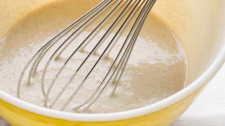 On the other hand, soy milk is one of the closest non-dairy alternatives to cow's milk when it comes to texture. It has a creaminess that works well in batter, making the pancakes slightly denser than those made with almond milk. The flavor is mildly beany, but it doesn't dominate the meal — especially when using unsweetened varieties. Soy milk's higher protein content also means that it can help provide structure to your pancakes, making them firm and hearty.