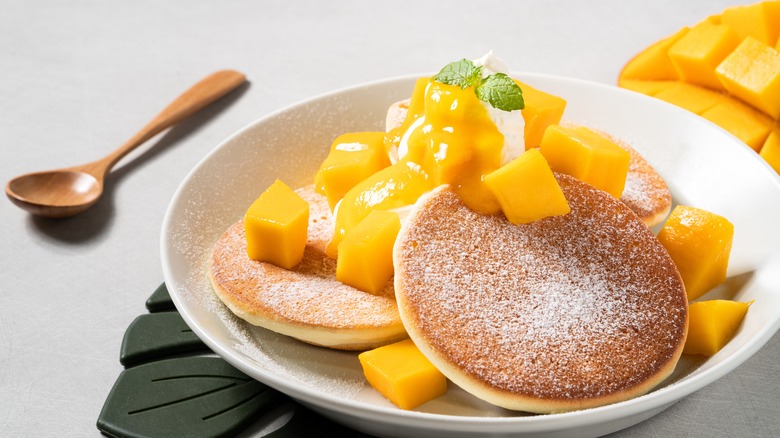 Finally, coconut milk, particularly canned, is much thicker than other plant-based milk, so it can make for a denser pancake. Its distinct coconut flavor can also be a super tasty addition if you're a fan of tropical tastes. Of course, this bold flavor can be polarizing: If you're not keen on coconut, it might be a bit too much in your pancakes. But if you love this fruit, then the substitution is perfect.