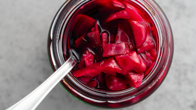 White vinegar is a simple solution of acetic acid diluted with water and adds a sharp, bright pungency to pickled ingredients. Malt vinegar has an even more potent flavor with nutty, tangy, and lightly sweet notes. You'll often see malt vinegar used as a dipping sauce in British pubs, and classic English pickles also use malt vinegar. The vinegar works best with sharp vegetables, such as onions, cabbage, and capers. Pearl or red onions are good starting options.