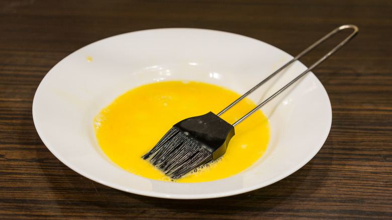 Making an egg wash couldn't be simpler, either. Just beat an egg thoroughly, and then use a pastry brush to lightly coat your onion rings with it. Try not to add too much egg wash, as this can soak into the onion ring batter and make it overly soggy. It'll also make it taste too eggy, which we're guessing you don't want. If you don't have any eggs to hand, you can use an egg wash substitute. Try using a little milk or cream instead, although you may find that doing this will give your onion rings a slight note of dairy.