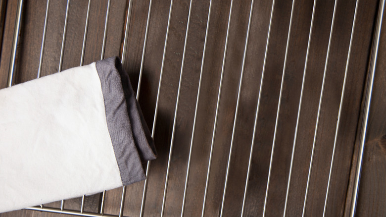 If you have a wire rack and you're not using it when you bake frozen food, you're doing things wrong. Although cooking frozen foods like onion rings on a tray can produce crispy results, a wire rack in your oven is the key to ensuring that the heat and hot air can fully envelop them. When the air is able to get around your onion rings, it'll cook them on both sides at once and ensure that any steam released doesn't collect in the food. It also stops you from having to flip them halfway through, although we'd still recommend doing so to ensure that they're as evenly cooked as possible.