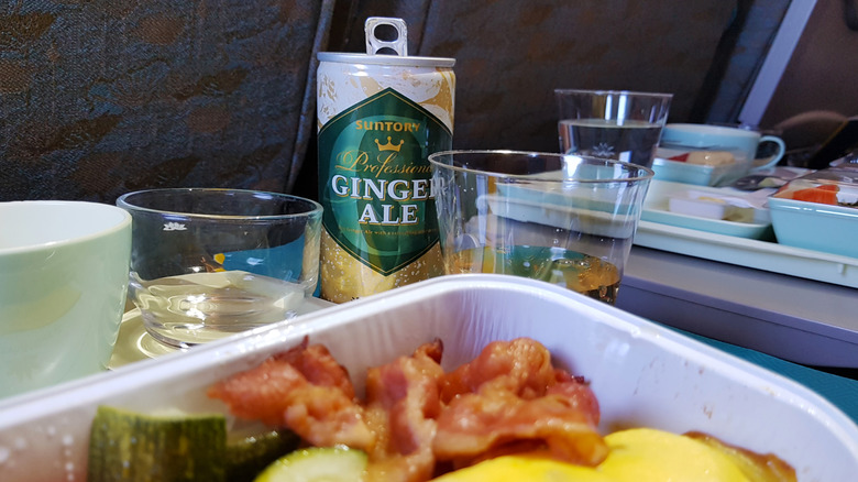 Well, this assumption is completely mistaken, folks — but what is true is that ginger ale can taste different when you're on a flight. When you're in the air, your tastebuds work differently. Researcher Andrea Burdack-Freitag, who has studied the impact of air travel on taste experience, told Health that the low pressure in airplane cabins affects oxygen levels in our bloodstream, and "as a result, some of the olfactory and taste receptors become less efficient." Sweet flavors are less impactful, whereas bitter and earthy ones are way more punchy. This basically means that drinks with a bit more bite to them, like ginger ale, taste much better than sodas that rely on sweeter notes. Pretty wild, huh?