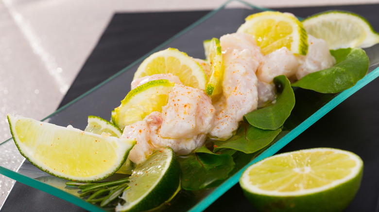 One of the most notable dishes that uses this technique is ceviche. Ceviche is a South American recipe that typically consists of raw fish, red onion, cilantro, salt, chili peppers, cucumber, and lime. It ends up tasting crisp and flavorful, combining sour, spicy, and savory flavors. You can use lime in a similar method to give your Japanese sashimi a Mexican twist inspired by aguachile. To give your fish a Latin twist, "cook" the sashimi in a marinade of lime juice, green chiles, cilantro, and a bit of water. Another option is to make Italian insalata di mare, with shrimp, calamari, mussels, scallops, and conch if it's available. For this recipe, you'll need to steep the seafood overnight in lime juice, olive oil, and garlic. With this "cooking" technique, limes create vibrant, refreshing meals that preserve the delicate flavors of the ocean. These dishes are sure to make a splash.