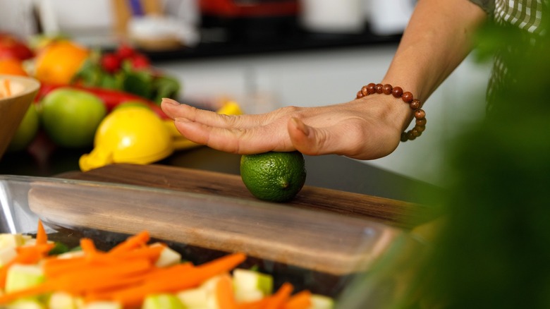 You might be the kind person who prefers to keep their limes in the fridge — and there's nothing wrong with that. It can help keep them fresh. However, the problem is cutting into those lime when they're still too cold. Lower temperatures can disrupt the lime's cell structure, which causes the fruit to become more firm and less juicy. That means you aren't extracting as much juice, and wasting energy in the process. Cutting chilled citrus can also have an impact on their taste, as colder temperatures can inhibit molecules responsible for aroma and flavor. Our taste buds often detect flavors more effectively when food is served at higher temperatures.