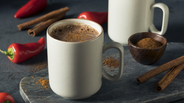 Akin to Mexican hot chocolate, René Bollier says, "a four-to-one blend of cinnamon to cayenne in your hot chocolate elevates the cocoa to a whole new level." Cinnamon is a common spice to add to hot chocolate, and the cayenne pepper adds a lasting warmth. Mexican hot chocolate is often served with breakfast on Dia de los Muertos (Day of the Dead).
