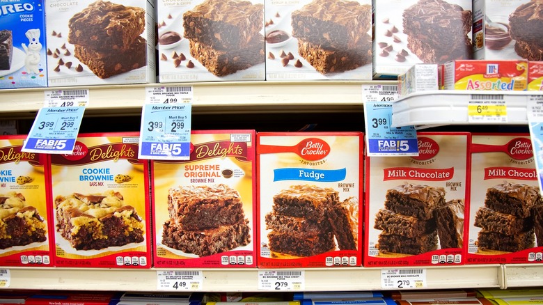 If you're looking for an excuse to get your fill of these soft, moist, gooey brownies, look no further than your closest Dollar Tree, which will scratch your itch for just $1.25 per box. Each pack of Pillsbury's Fudge Brownie Mix comes in a 12.9-ounce box valued at 10 cents per ounce. Aldi stocks 18-ounce boxes of Specially Selected's Double Chocolate Brownie Mix at $2.19 a pop, coming up to 12 cents per ounce. If you've got a sugar tooth and tend to eat a whole lot of brownies, then we don't need to tell you that every cent counts.