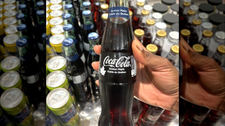 If the reviews on Reddit are any indication, it's worth the trip. "This is one of my favorite treats I'm bringing back home to the U.S.," one commenter says. "100% if you like maple syrup it's gonna taste great to you," raves another. There might not be a better endorsement of a soda flavor than that. If the packaging has a maple leaf, you're going to want to taste it. Speaking of the packaging, it features a tastefully drawn maple leaf and Coke's bright red lettering.