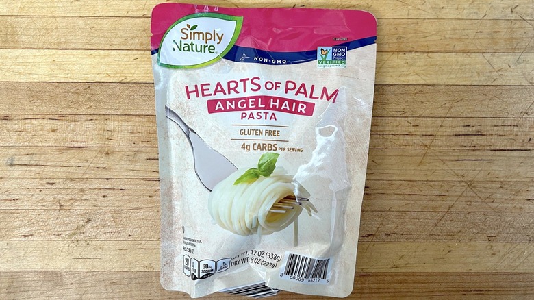 The idea of lowering calorie counts and reducing carbohydrates by making pasta from vegetables is nothing new. You can make zoodles out of spiralized zucchini or whip up a baked spaghetti squash recipe as an alternative to your usual semolina flour pasta noodles. Simply Nature attempts to do the same thing using hearts of palm for angel hair pasta, but it doesn't quite work. The noodles are bitter and gritty, which isn't exactly what you're going for with a rich bowl of pasta. One customer on Reddit notes, "They do have a tang to them, so I would recommend a tomato sauce over, say, olive oil or butter." So, even if you can get past those odd, bitter notes, you might not be able to pair the pasta with all your favorite sauces and toppings.