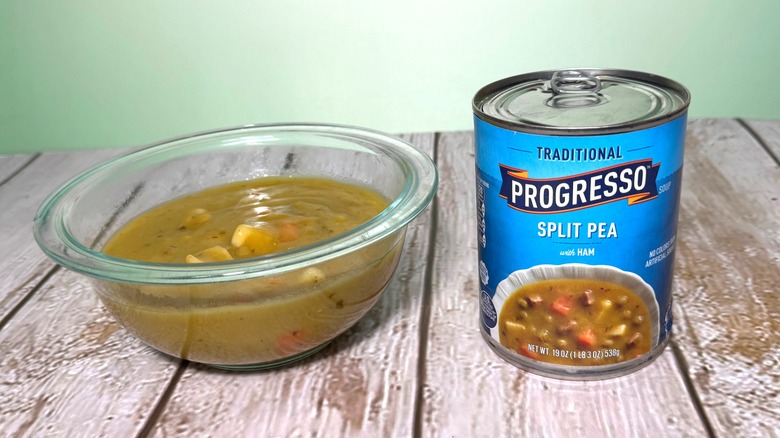 As a kid who grew up with family in both northern and southern California, I've eaten more than my fair share of split pea soup. For those unfamiliar, there's a golden state institution known as Pea Soup Andersen's, a restaurant and shop that sits right off of the I-5 freeway that beckons people in from their long drives with a charmingly out-of-place windmill and famous split pea soup. I'll spend the rest of my life comparing every bowl of split pea soup I have to those early memories, and while I still have yet to find one that stacks up, Progresso's version is very flavorful.
