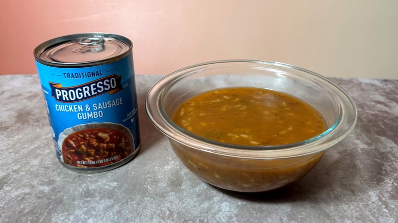 With Progresso's Traditional and Vegetable Classics soups, the general vibe is mellow. There's not a ton of flavor intensity or over-the-top richness or smack-you-in-the-face spice within most of these cans. That's why, when I finally got around to tasting their chicken and sausage gumbo, I was absolutely bowled over. Now, I don't pretend to be an expert in Creole or Cajun cuisine (although I am certainly an expert in eating it if it's put in front of me), and I'm sure this is not an authentically prepared gumbo like you'll get in Louisiana. That said, this soup is overflowing with flavor, brimming with spice, and as hearty and filling as any canned soup you'll find.