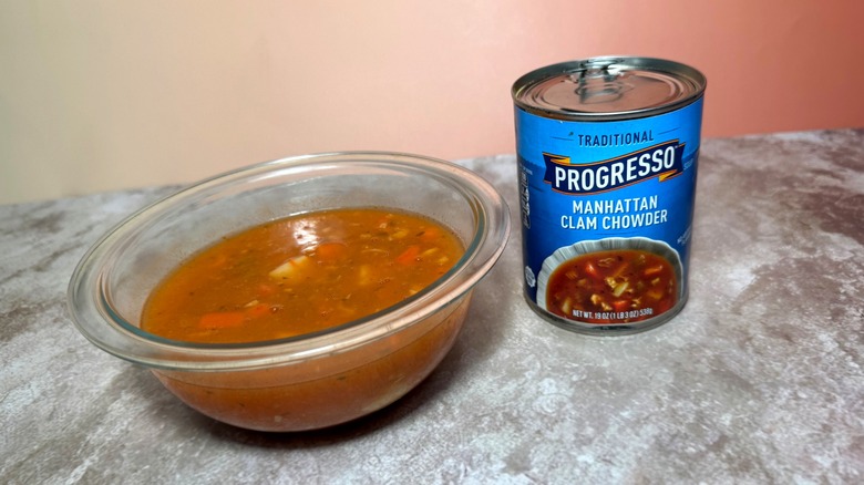When it comes to opinions regarding clam chowder, tempers can run high. As a former Boston resident and current denizen of the San Francisco bay area, creamy New England clam chowder is the clearly superior version in my book. That said, I'm not a Manhattan clam chowder hater — it's not that dissimilar to cioppino, another classic San Francisco dish that stews seafood in a tomato-based broth. Progresso's take on Manhattan clam chowder isn't bad, it's just not that exciting.