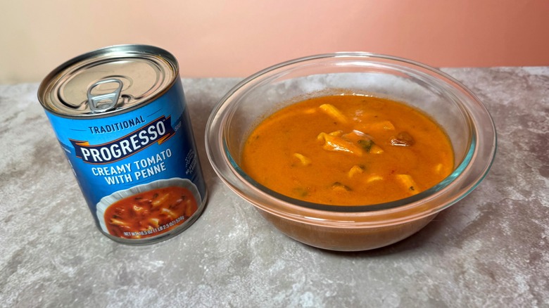 I love a rich, comforting creamy tomato soup — preferably with a perfectly cooked, crispy grilled cheese sandwich, but I'll take it either way — and Progresso's version, with the addition of penne pasta, is nearly everything I hoped it would be. When I first tasted it, the sky was grey with rainclouds, and as I gazed out the window with my spoon in hand, I experienced a moment of pure soup bliss. In my mind, there's just no better soup for cold, wintry weather.