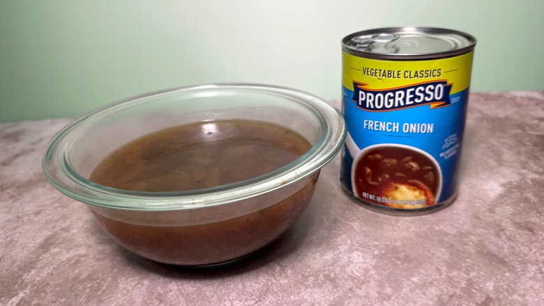 French onion soup is one of my favorite dishes in the entire world. It's the ultimate combination of sophisticated and comforting. Making it from scratch is quite a challenge, as classic French onion soup needs time and attention to get every element right. Progresso's French onion soup doesn't include the traditional topping of toasted bread and melted Gruyere cheese, and I assumed that without those accoutrements that this version would be boring. To my surprise, I found it to be so wonderfully flavorful that after a few moments I forgot all about the missing toppings.