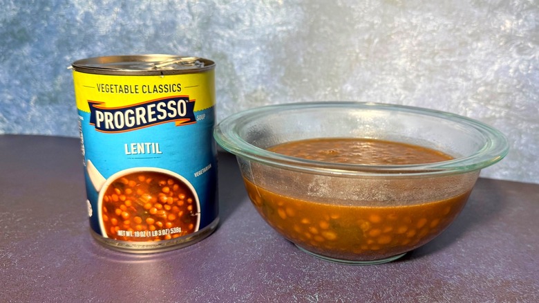 They say that less is more, and with Progresso's lentil soup, that old saw is particularly apt. For a mass-produced canned food, the ingredient list is shockingly short. As for the main elements, the broth consists of water and tomato paste, then there's celery and spinach, and, of course, lentils. Somehow out of that small humble group of, let's be honest, boring-sounding ingredients, Progresso crafts a hearty, rich, and satisfying vegetarian soup. After eating this, I felt full, healthy, and restored.